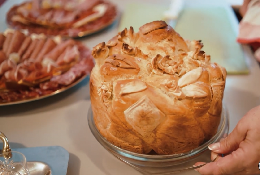 Način pripreme - U mlako mleko dodati kvasac, kašičicu šećera so i ulje i ostaviti na toplom mestu da naraste. U narastao kvasac, dodavati postepeno dve trećine količine brašna, istopljeni puter i 1 jaje, dok se ne umesi meko testo. Ostaviti da 15 min odmori i naraste, pa ga premesiti i dodati ostatak brašna, da se ne lepi za posudu. U okrugao dublji kalup ili šerpu staviti pek papir i namazati ga uljem. Testo oblikovati u loptu i staviti u kalup, premazati ga osveštanom vodicom i lepiti ukrase napravljene prethodni dan, tako što se kolač premaže umućenim jajetom. Kada se završi sa ukrašavanjem neka kolač odstoji još 15 minuta, a zatim ga peći na 180 °C oko 45 minuta. Kolač pre toga izbockati iglom. Čim se kolač izvadi iz rerne, pažljivo ga odozgo premazati mlakom vodom u kojoj je prethodno rastvoreno malo šećera (da bi spoljna površina kolača bila sjajna) i zatim izručiti na čist tanjir.