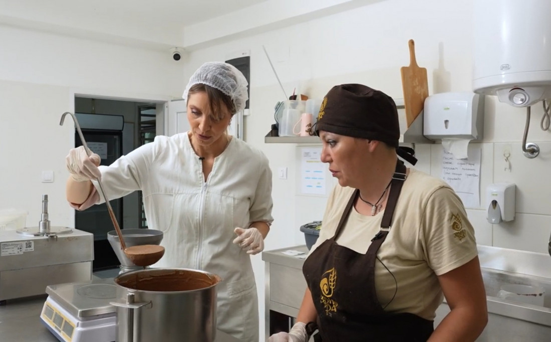 Potom nas je Ana sprovela kroz čitav proizvodni pogon pokazavši nam kako nastaju sve te đakonije koje su upravo Aca i ona osmislili. Na kraju došao je red da stavimo na test i našu voditeljku Draganu, kojoj je dodeljen zadatak da napravi zdrav krem KokoRa. Čitav recept je prikazan, ali Dragana ne bi bila Dragana da nije nešto zabrljala, što ćemo da vam otkrijemo subotu uveče.