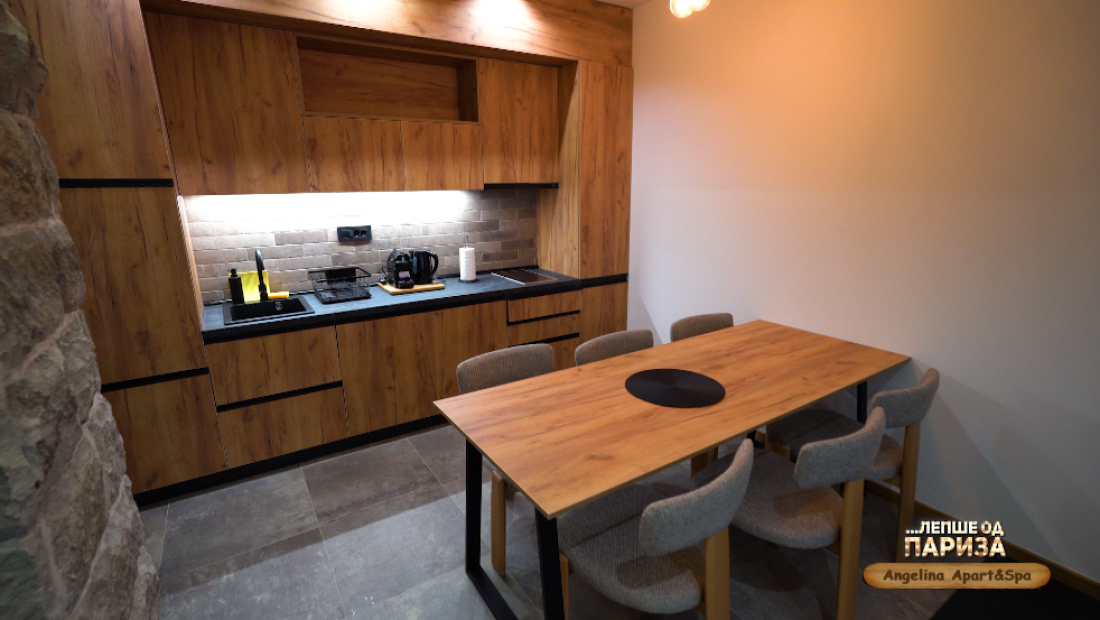 Svaki apartman je moderno opremljen, a zidove krase fotografije koje, kako domaćini kažu, predstavljaju „zapis u vremenu“. Za goste koji planiraju duži boravak, značajna prednost su potpuno opremljene kuhinje, dok su detalji od kamena i drveta diskretno uklopljeni u celokupan ambijent. Cena smeštaja je od 75 evra po apartmanu, u zavisnosti od perioda godine i potražnje.