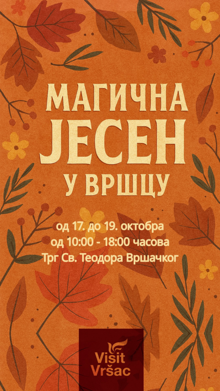 15.10.2025.Na Trgu Svetog Teodora Vršačkog od četvrtka, 17. oktobra, do subote, 19. oktobra, biće održana manifestacija „Magična jesen“, u Vršcu.