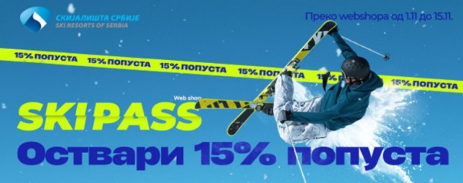Pretprodaja ski-karata na veb-šopu Skijališta Srbije biće moguća u periodu od 1. do 15. novembra, uz popust od 15% na sve vrste ski-karata. Nakon tog prvog perioda pretprodaje, od 1. do 8. decembra, popust na ski-karte biće 10%, a od 9. decembra pa do kraja sezone 5%.