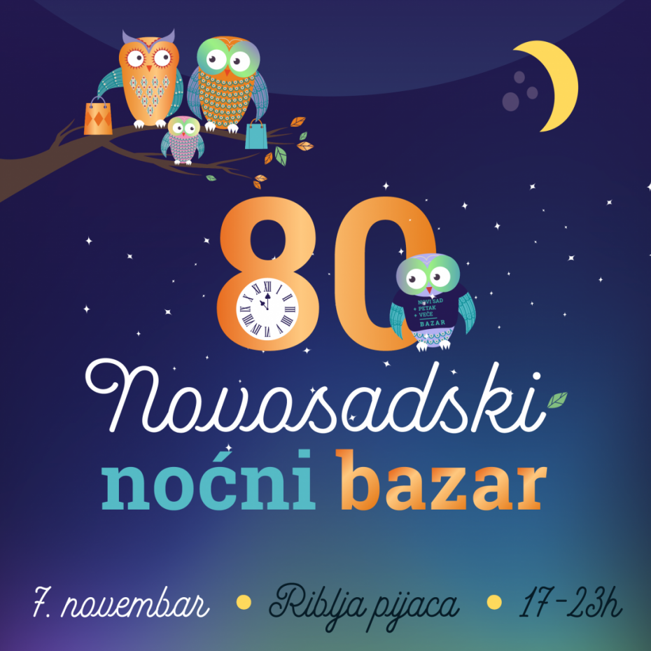 I na ovom bazaru posetioci će imati priliku da se upoznaju sa radom i gastronomskim i umetničkim proizvodima proizvođača i izlagača. Novosadski noćni bazar redovna je manifestacija koja se održava svakog prvog petka u mesecu. U proseku učestvuje više od 300 izlagača, a događaj poseti i do četiri hiljade ljudi. Ova manifestacija postala je simbol grada Novog Sada, ali i simbol podrške preduzetništvu, malim proizvođačima i razvoju privrede.