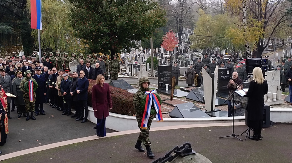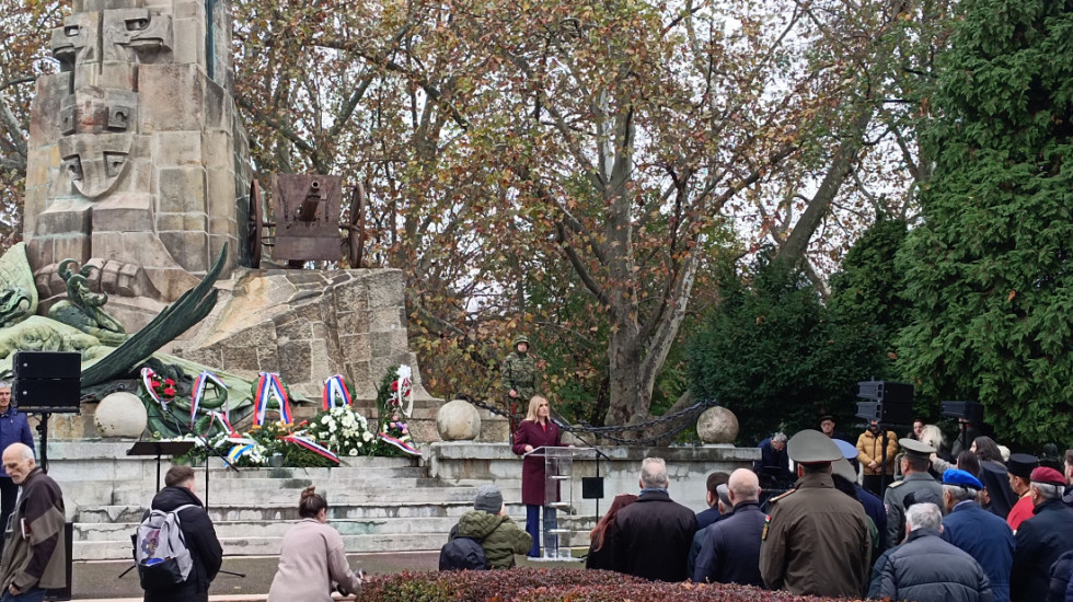 "Ovo je dan kada ne želimo da govorimo o mraku rata koji je trajao četiri godine, već o svetlosti koja se u tom mraku javila, o svećama koje su gorele kao buktinje da taj izgusnuti mrak razgrnu. Da govorimo o ljudima koji su pomerali granice izdržljivosti, koji su demantovali istoriju. Oni su pokazali da se sve može i hoće kada se nosi u srcu ljubav prema otadžbini. U rovovima Cera, u blatu Kolubare, na kamenitim prevojima Albanije, u tihom bolu Krfa, u dubini "Plave grobnice", naš narod položio je cenu slobode o kojoj se govorilo šapatom," rekla je ministarka.