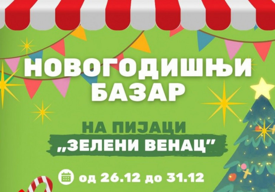 Javno komunalno preduzeće „Beogradske pijace” od 26. do 31. decembra organizuje „Novogodišnji bazar” od 8 do 16 časova na pijaci „Zeleni venac”.