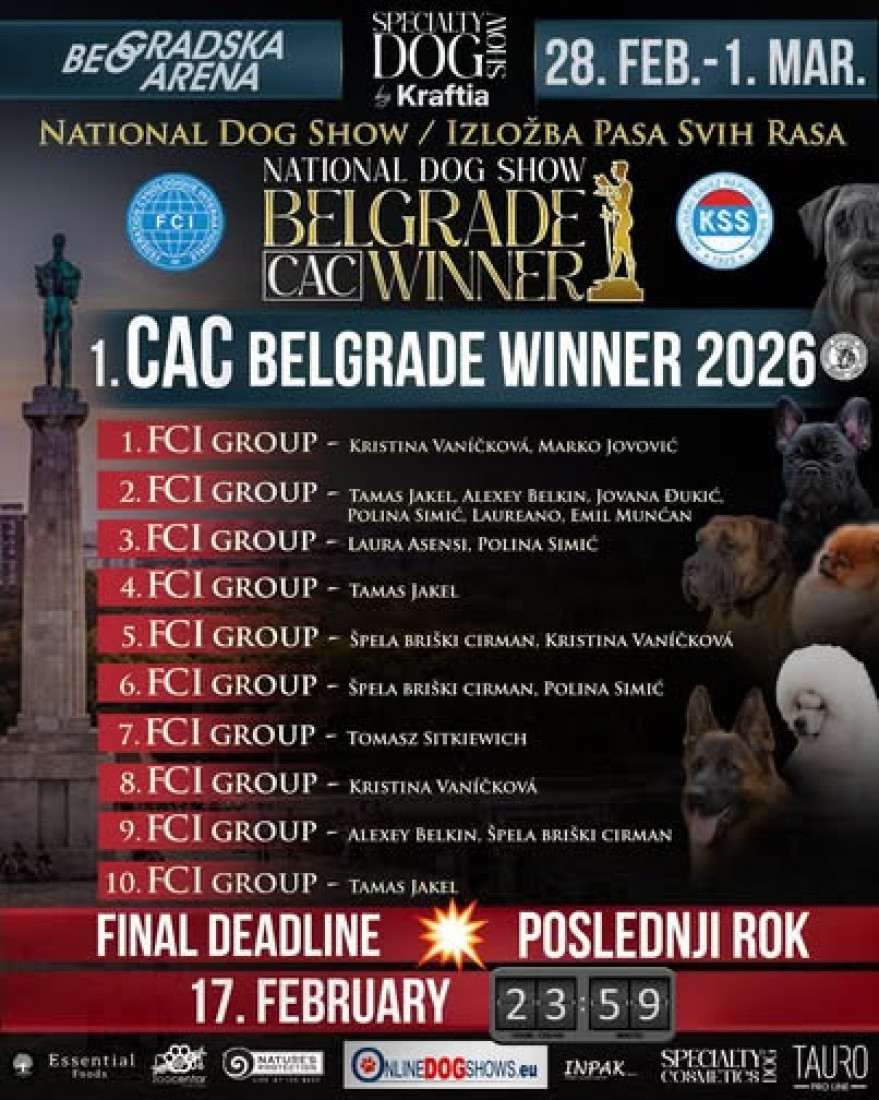 Velika svetska specijalizovana izložba pasa "SPECIALTY DOG SHOW" i Nacionalna izložba pasa svih rasa „BELGRADE WINNER CAC“ biće održana od 28. februara do 1. marta 2026. godine u Beogradu, u Beogradskoj areni.