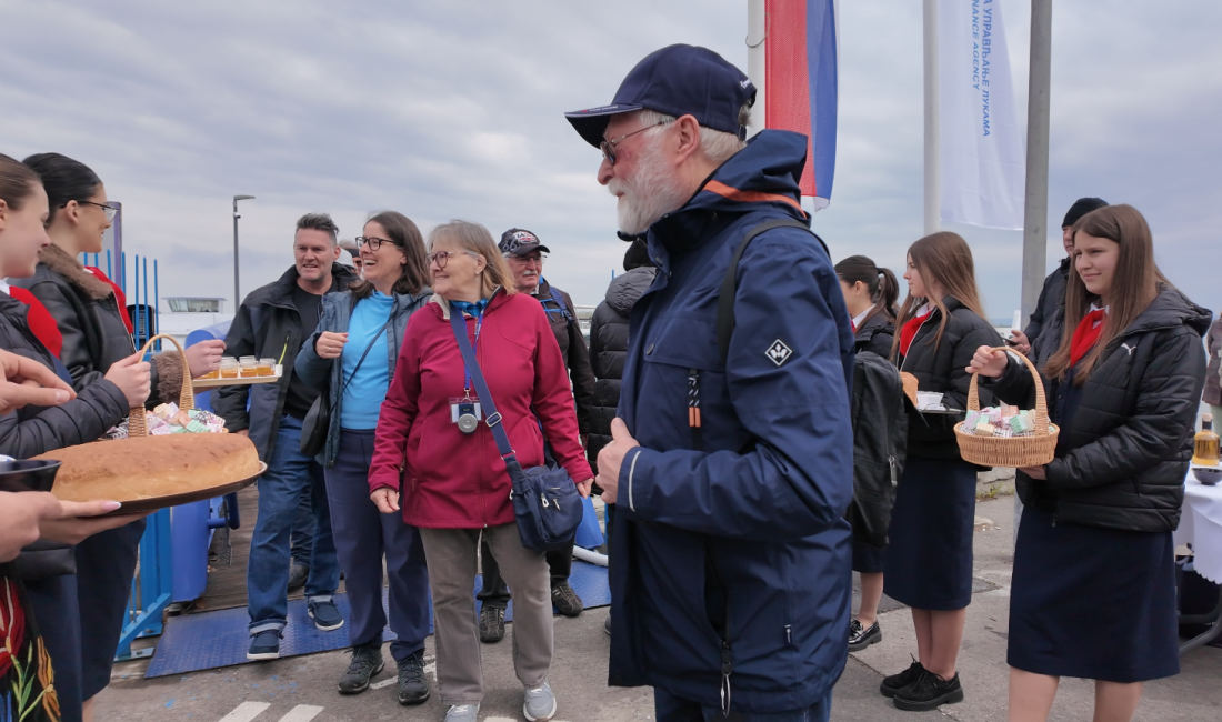 Turistička organizacija Beograda u saradnji sa Prvim parobrodskim društvom i ove godine priredila je svečani doček prvih putnika sa kruzera, na tradicionalan srpski način - uz domaću rakiju, pogaču, so i poklone iznenađenja...