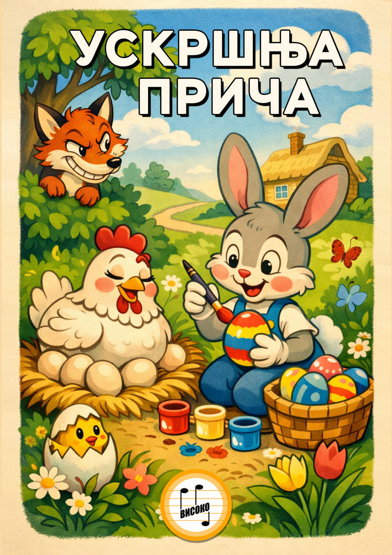 U režiji Branislava Cvijića, i u izvođenju ansambla udruženja umetnika Visoko C, ova raskošna predstava donosi priču o prijateljstvu, razumevanju i snazi praštanja vrednostima koje Uskrs čine najradosnijim praznikom. Ova opera u jednom činu, sa šest živopisnih slika i čak deset muzikalnih numera, spaja pevanje, glumu i pokret u razigranu scensku bajku. Kroz vedre i pamtljive melodije, publika će zajedno sa junacima otkrivati značenje Uskrsa praznika koji slavi život, svetlost i ljubav. U središtu priče je neodoljivi zec Mića zbunjen, simpatičan i radoznao, koji se slučajno zatiče u užurbanom dvorištu gde koke i pilići pripremaju Uskrs. Njegova pitanja postaju i pitanja publike šta je Uskrs i zašto ga slavimo? Odgovori dolaze kroz igru, pesmu i zajedništvo.