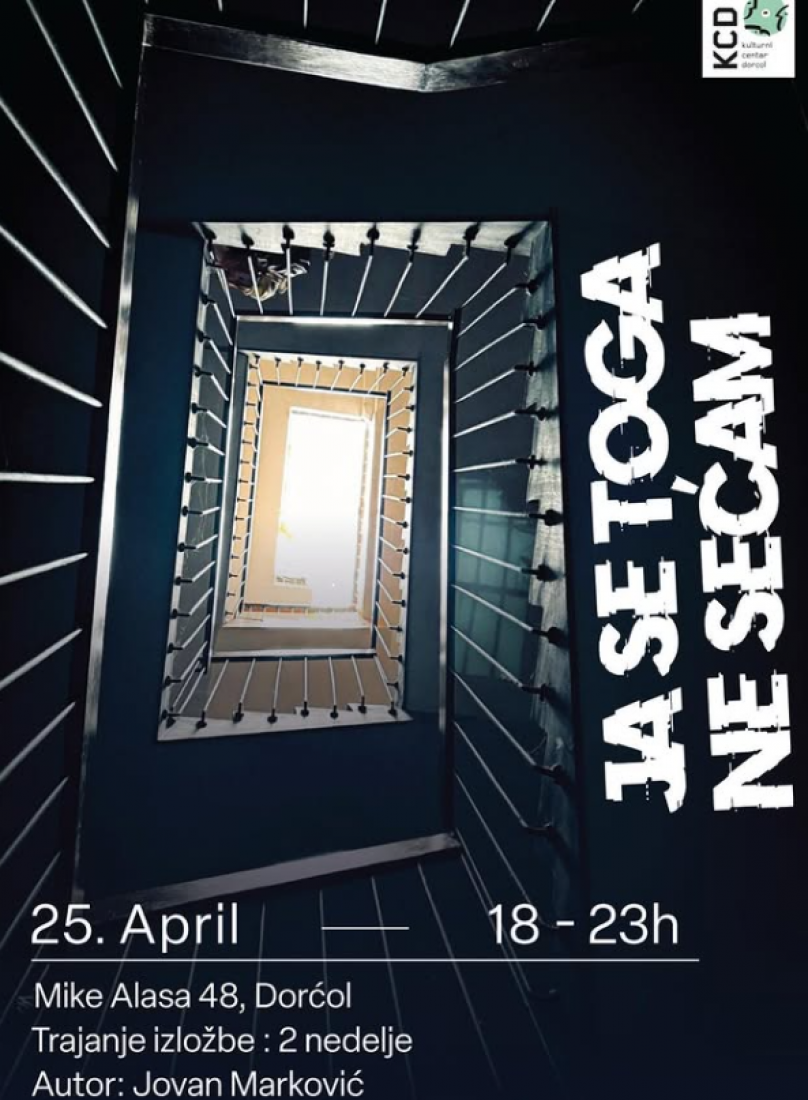 Izložba fotografija "Ja se toga ne sećam" autora Jovana Markovića biće otvorena u Kulturnom centru Dorćol, u subotu, 25. aprila od 18h.